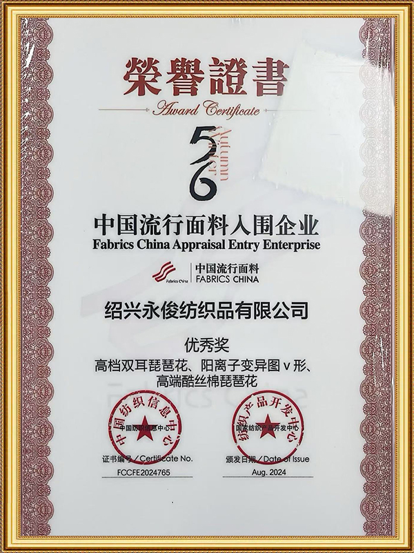 L'azienda opera con professionalità nella produzione e nello sviluppo di fodere e tessuti da donna, stabilendo diversi standard qualitativi per soddisfare le esigenze della clientela. Il marchio "Yongjun" è stato registrato nel 2006 e i marchi "Jingjun" e "Yuedu" sono stati registrati nel 2018. L'azienda tiene il passo con le esigenze dei clienti e le tendenze del mercato per la ricerca e lo sviluppo, concentrandosi sulla produzione su ordinazione. Integrando commercio e produzione attraverso operazioni di filati e tessuti grezzi, l'azienda garantisce che la propria capacità di approvvigionamento non sia limitata.